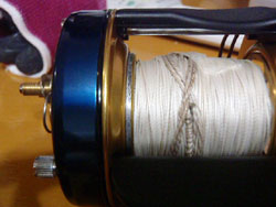 ポパイブランドのライン。2500円くらいで、お買い得値段なんですが、編み方がゆるくて、バックラを直していると、編みこみが緩むトラブルが続出。スグにアバニに巻き変えました。ツメで奥に入り込んだラインを引き出していると、ヨリ糸のミクロの一本一本がちぎれるのもあったので、すぐにアバニに巻き変えました。多分、二度と使うことはないと思います。結局は値段はさておき、アバニよりも使いやすいかどうかが使うかどうかの指標になっています。