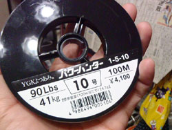 久しぶりにラインにこんだけ金出しました。なんせ高い上に、PEって10号まで行くと、まず切れないし、性能の違いが分かりにくくて、買わなかったんですよね〜。しかし、「最高峰」と言う文字を見ると試してみたくなるのが釣り人の哀しい性w