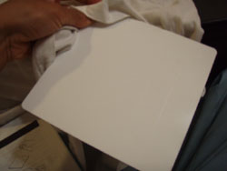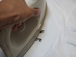 で、40分経つとインクが乾くので、仕上げにアイロンで3分ほどあてて終了。スキーム機能が働くとインクが溶けてしまうので、ドライモードにします。水をカラにすればいいんですね。焼付け乾燥ってやつです。
