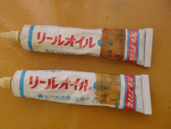 ちなみに、今はもう見かけませんが、昔かったグリスがあったので、これを使ってメンテナンスすることにしています。ノンブランドのリールオイルですw