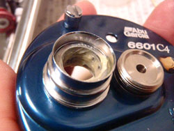 アブの技術部に電話してメンテナンス法を聞いてみたら、純正オイルには金属トリートメント剤は配合されていないらしく、IARのメンテナンスは純正オイル推奨とのことでした。で、アブのオイルはシャバシャバなため、そのオイルが流れたらいけないので、シーリングとして、ハンドルカラーのところにオイルの流れ止めとして、純正グリスを使用するのが良いとのことでした。ところが、純正グリスは、金属トリートメント剤として、テフロンが配合されており、今まで述べてきたことに逆行してしまいます。