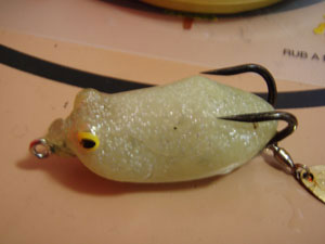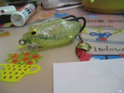 最近、たくさんのフロッグでラメカラーが出てきました。上の写真はウィップラッシュさんの新作ラメカラーAMGRです。ラメはキラキラがうろこのようで、魚を食べている雷魚に絶大な効果を誇るフロッグです。しかし、このフロッグ。注意点があります。