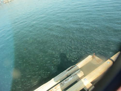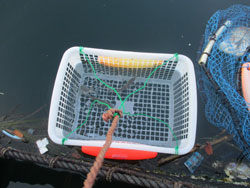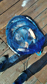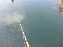 イケスの中、イワシがウヨウヨしていたので、網ですくって、