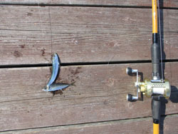 ラスト30分は生きアジのピクピクにイワシのフラッシング効果を狙って、2本がけ。