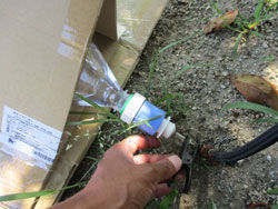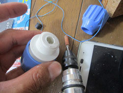 反対側も穴開けて、自転車の空気バルブ挿入。
