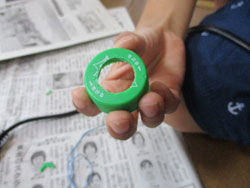 先っぽをとがらせて安定させるために、別のペットボトルをドナーに。加えて、工作用画用紙で、尾翼を追加。