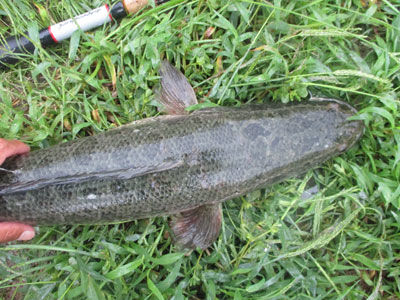 もう干上がる寸前なんですが、オープンエリアに雷魚を発見。