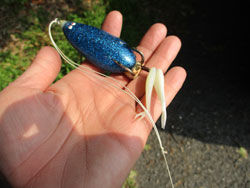 フロッグは昨年からイチバンのお気に入りのタカ青ラメ。やっぱオープンで力の強いカラーと形状は信頼大きいぜ!フッキング悪いけどw