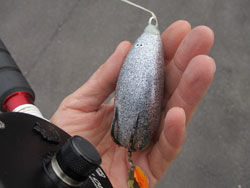 今日は昨日のフロッグそのまんまで、スイベルカラスを投入。