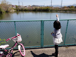 それから、娘と一緒に近くの池へチャリツーリング&カメのエサやり。