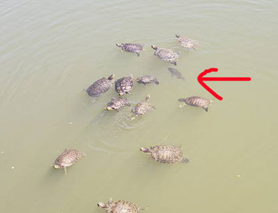 しっかし、ミドリガメの多いこと多いこと。こりゃ、いくら池干しして駆除しても無意味ですわ。