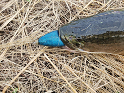 コイに混じった雷魚を探していきますが、ブッシュ際にマメが1本いただけで、さらにこいつも見向きもしません。