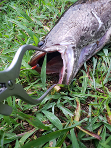 いわく、「近くの池で雷魚釣ってる人見たことあるで!」とのこと。