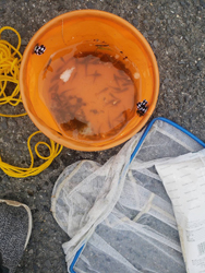 でも涼しくて、網も落ちてたので魚掬ってみると、ウキゴリゲット!