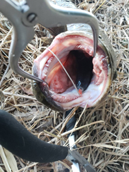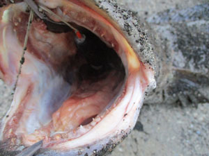 しかし、角度が悪いのでラインをフリーにして泳がせ、いいころ合いで鬼フッキング!