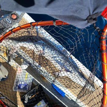 イカの切り身と活きアジを使い、ベタ底を探ります。