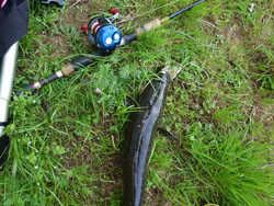 結構風が強いので風裏を狙って入ってみると早速第1ライギョ発見!