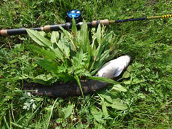 到着して、クリークを偵察してみると、前方から不審な人物が竿と落としタモを持って歩いているではありませんか!