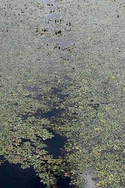 前回来た時に比べると、ヒシが成長しており、ほぼ半分張っています。