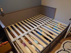 主な仕事は、2階のベットの解体。めちゃ大変ですわ。でかすぎて、2階から出せんのwってか、ニトリの運送屋、2階の窓からこんなデカイもんよく入れたな・・・・