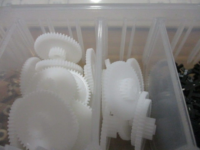 アブのコグホイールは、射出成形というプラスチック成型によって作られており、これは、メス型を2枚重ねて、その隙間に溶けたジュラコンのコンパウンドを注入していき、冷却固形した後、メス型を外して離型し、成形品を取り出すといった流れで作られています。