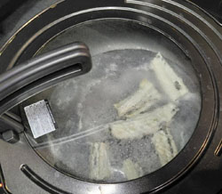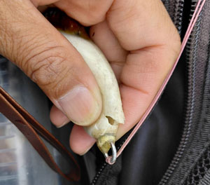 タカに激しい首振りをさせ、水中に潜らせると、直後