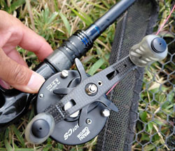 竿先をスーッと聞きながら、ラインテンションを確認すると、この時テンションがかかる!