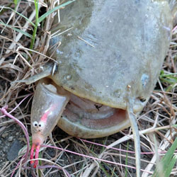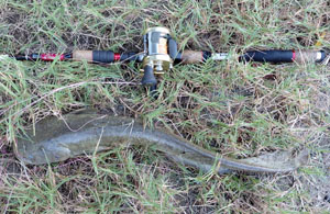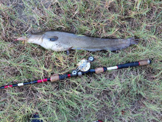 なかば雷魚を諦めて、ナマズを狙ってみるとナマズも活性が悪く、反応する魚がいたりいなかったり。